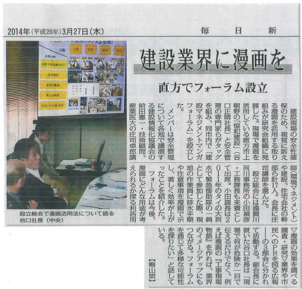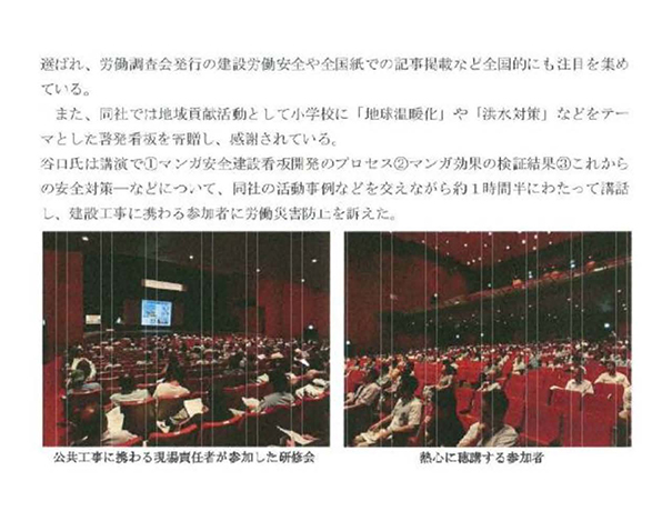 マンガを活用した建設現場のリスクマネジメントや、KY活動についての講演会が新聞に取り上げられました。